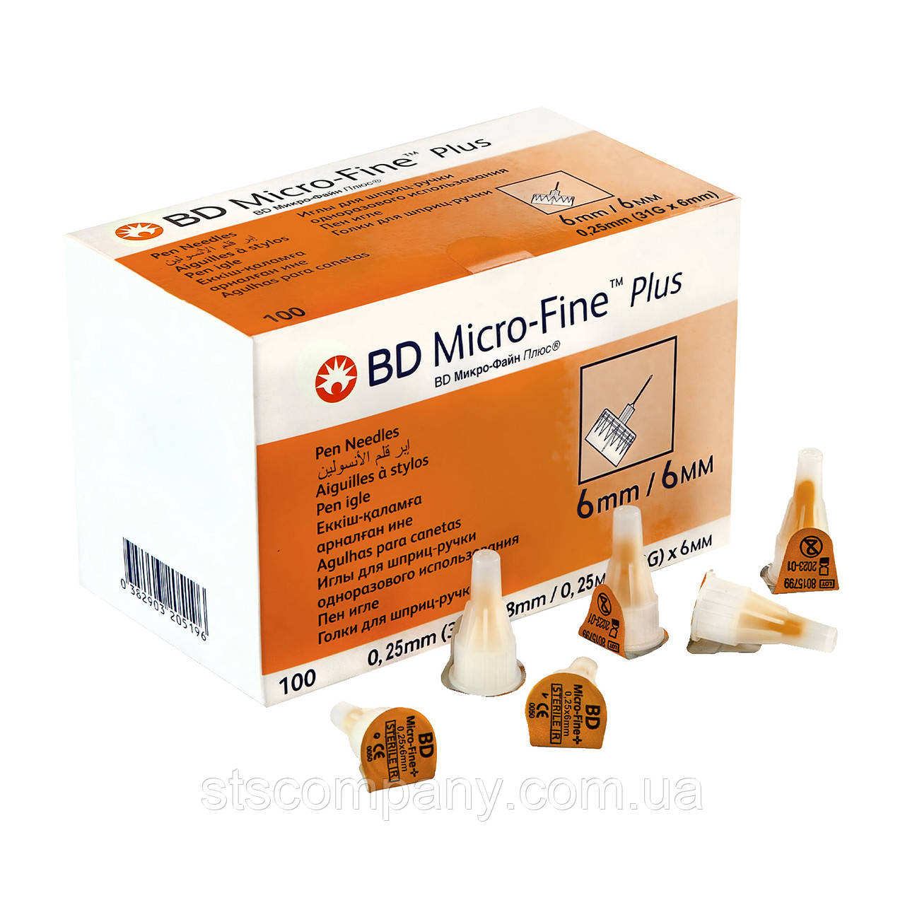 Універсальні інсулінові голки Мікро-Файн Плюс 6 мм (Micro-Fine Plus) для інсулінових шприц-ручок будь-яких виробників.